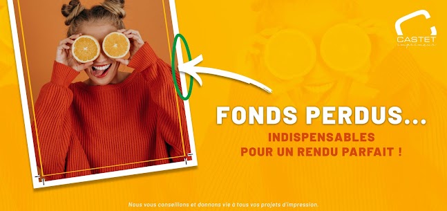 Chez Castet, nous contrôlons systématiquement vos fichiers avant impression afin de vérifier que tous les éléments techniques sont conformes (fond perdu, marges, résolution…).